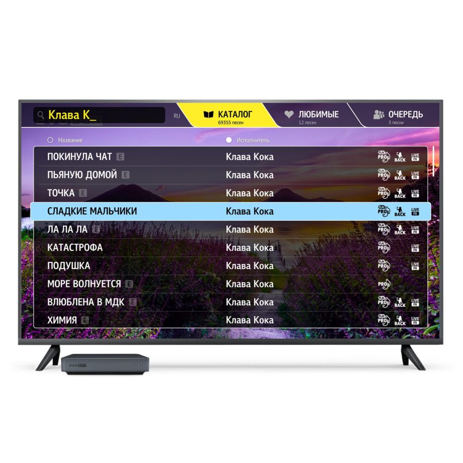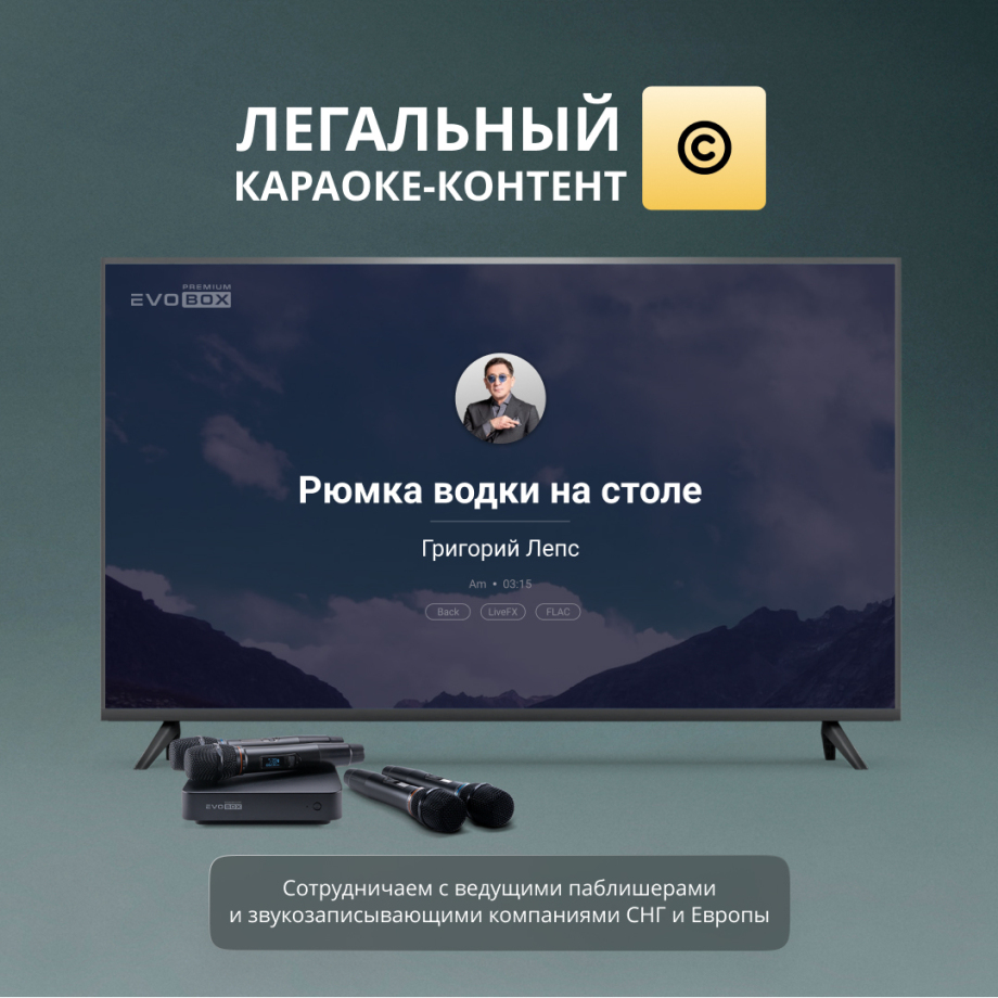 В караоке-системе EVOBOX Premium используется только легальный караоке-контент. Мы сотрудничаем с ведущими мировыми лейблами