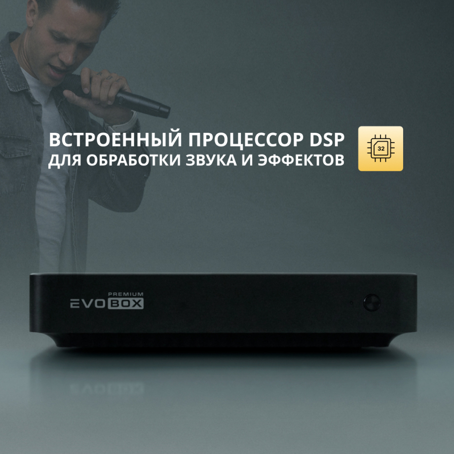 Миниатюрная система EVOBOX Premium собрала в себе все возможности современных караоке-систем: профессиональная обработка голоса, интеллектуальный поиск песен, запись в студийном качестве и многое другое.