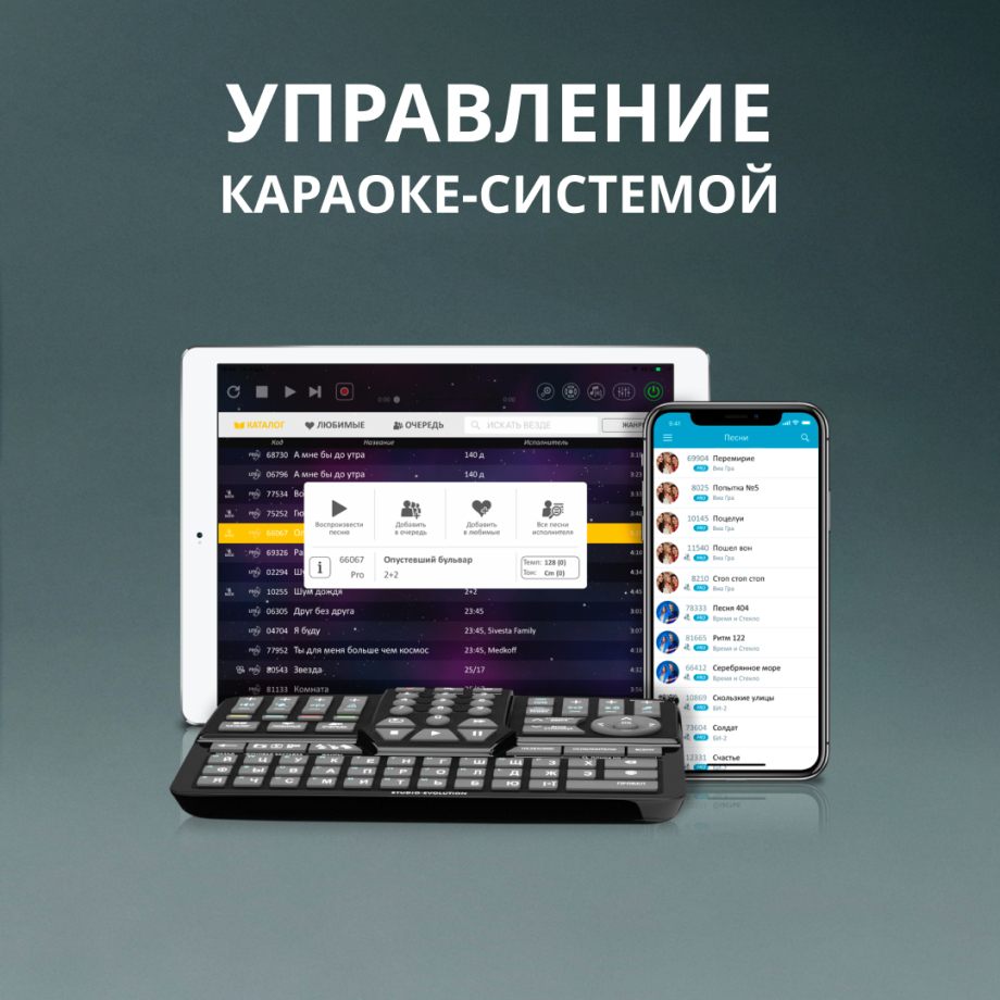 Приложение позволяет управлять клубными системами EVOBOX Club, Evolution Pro2 и домашними караоке-системами.