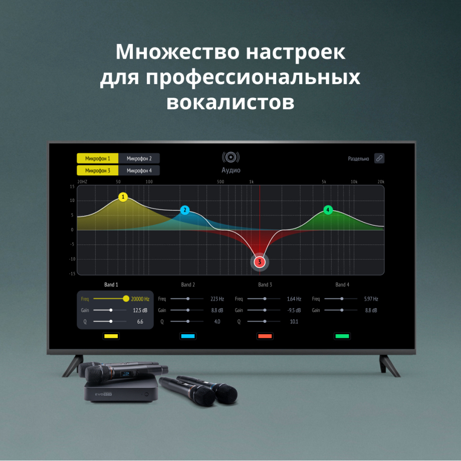 Премиальные компоненты, подключение до 4 микрофонов,